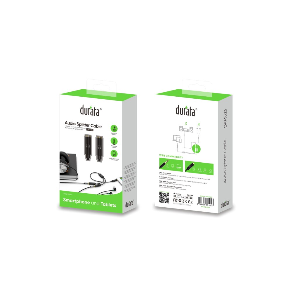De Audio Splitter Cable DRMU23 is een gebruiksvriendelijke stereo-splitter waarmee je eenvoudig één 3.5 mm audio-uitgang omzet naar twee aparte 3.5 mm aansluitingen. Plug de male stekker in je smartphone, laptop of tablet, en sluit vervolgens twee hoofdtelefoons of speakers aan — ideaal voor samen muziek luisteren, films kijken of gamen met een vriend.